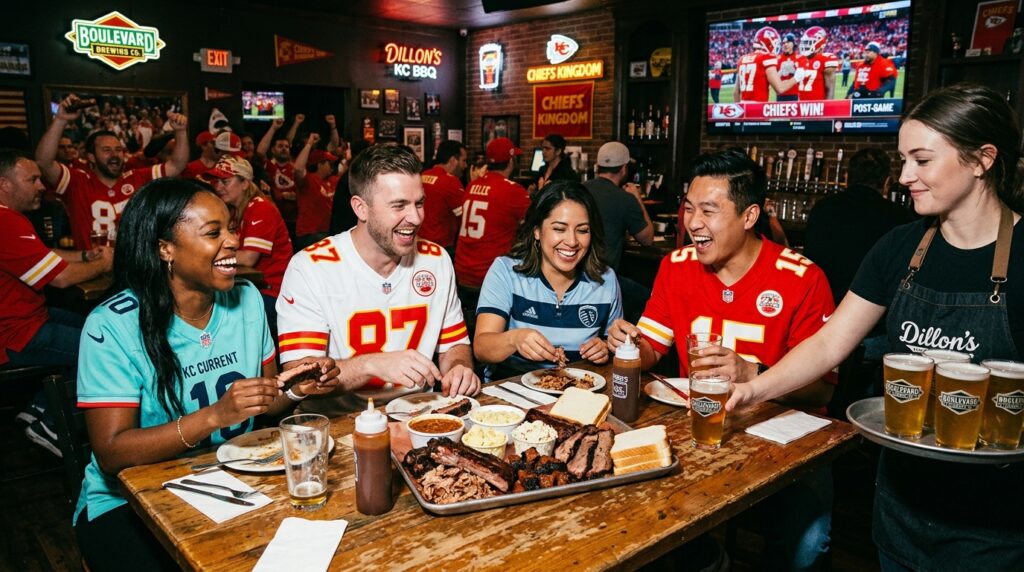 Alternatively, look into Dillon’s KC BBQ right near the stadium. This spot offers a totally different energy. It features a lively sports bar vibe and frequently hosts live music on the weekends. They explicitly stay open late to cater to the massive crowds pouring out of the venue. You can keep the post-game party going, grab a cold local beer, and chew on some fantastic brisket while you wait for the highway traffic to finally thin out.