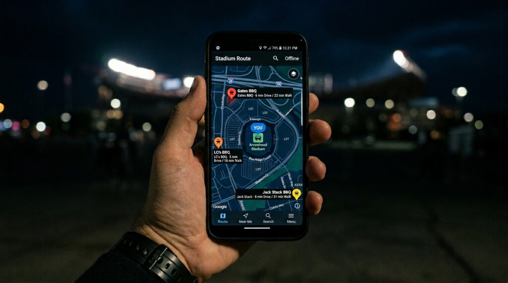 Knowing all these amazing barbecue locations is totally useless if you cannot find them. We already established that cell service around the venue evaporates the moment the game ends. How do you navigate the confusing local streets when your map app refuses to load?