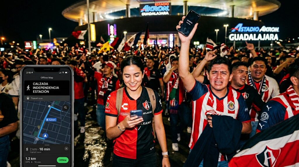 Picture the scene. The final whistle blows. Forty-eight thousand thrilled fans all reach into their pockets to text their families, post photos to social media, and call an Uber. The local cellular towers cannot handle the massive tsunami of data requests. Your signal will drop to zero. Your screen will freeze. If you need to find the walking path to the Mi Macro Periférico station or locate a safe exit route, you are completely out of luck.