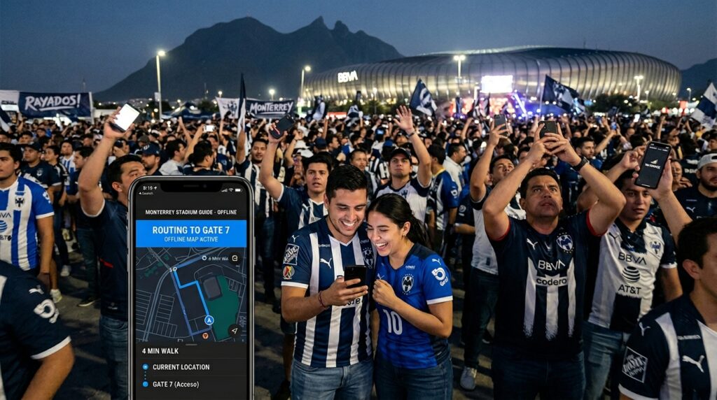 Crossing the US-Mexico border at El Paso to reach the massive Monterrey football matches is an adventurous, highly rewarding travel strategy that saves you from astronomical airfares. Once you are in Monterrey, ditch the car and ride Metrorrey Line 1 straight to the stadium action. Most importantly, do not let the inevitable game day cell service crash ruin your experience. Arm your smartphone with the offline power of the Stadium Route app before your trip begins. Navigate the borders, conquer the transit lines, and get ready to experience the most thrilling sporting event of your life!