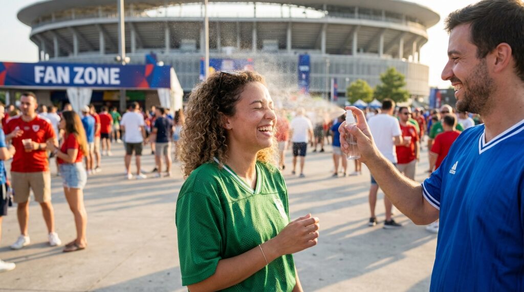 When the air is thick and the breeze completely dies down inside the stadium bowl, you need to create your own microclimate. Small, hand-powered water misters are a genius addition to your clear bag. Notice the keyword here is ‘hand-powered’. Battery-operated fans with large blades or motorised misting machines might get rejected at the gate. A simple, manual pump mister filled with cool water from a stadium drinking fountain provides incredible evaporative cooling without violating a single security protocol.