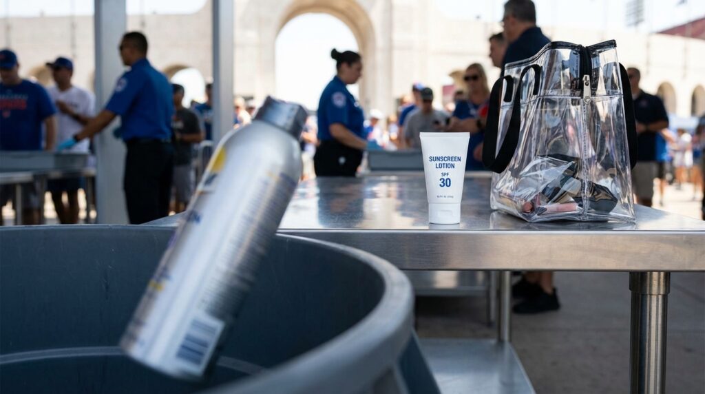 Before we even talk about sunscreen, we have to talk about the vessel carrying it. You cannot outsmart the stadium security gates. You simply have to play by their rigid rulebook. Think of this policy as an uncompromising physical firewall designed to keep tens of thousands of people safe and keep the entry lines moving rapidly.
