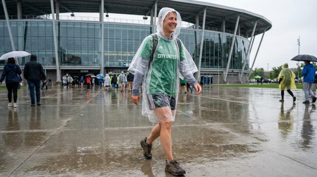 The secret to conquering this weather is aggressive layering. Leave the heavy, bulky coats at home. Instead, pack a series of lightweight, breathable layers. You need a base layer of moisture-wicking athletic shirts that pull sweat away from your body during the midday heat. Over that, pack a lightweight long-sleeve shirt for the aggressive air conditioning found in American restaurants and Canadian transit systems. Finally, your absolute best friend is a high-quality, compact rain jacket or a heavy-duty poncho. Sudden, violent summer thunderstorms are incredibly common across the East Coast and the South. A poncho takes up zero space in your clear bag and will save you from sitting completely soaked for a three-hour match.