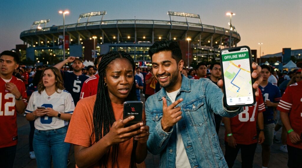 When the final whistle blows, and 80,000 fans flood out of a massive stadium at the same moment, the local cellular networks completely crash. Your phone will show full signal bars, but absolutely nothing will load. You will not be able to check your maps, call a rideshare, or look up transit times. This is the moment when unprepared fans panic.