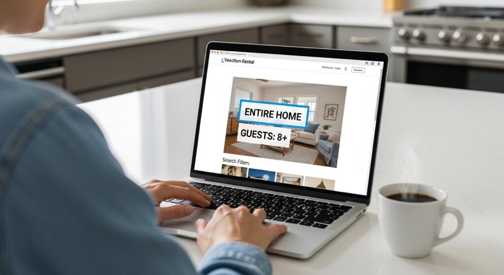 When you open Airbnb or Vrbo, you must be ruthlessly strict with your search filters. First, you absolutely must select the “entire home” filter. You do not want your rowdy group of ten football fans sharing a kitchen with a confused host.