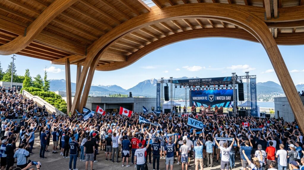 Your journey begins right at the Main Street Science World SkyTrain station. The moment you step off the train platform, you are immediately immersed in the action. You will hear the thumping bass of street musicians, see vibrant cultural performers, and feel the nervous, excited energy of the crowd. It is the perfect designated meeting spot to rally your friends, paint your face in your team colors, and get your mind right for the massive match ahead.