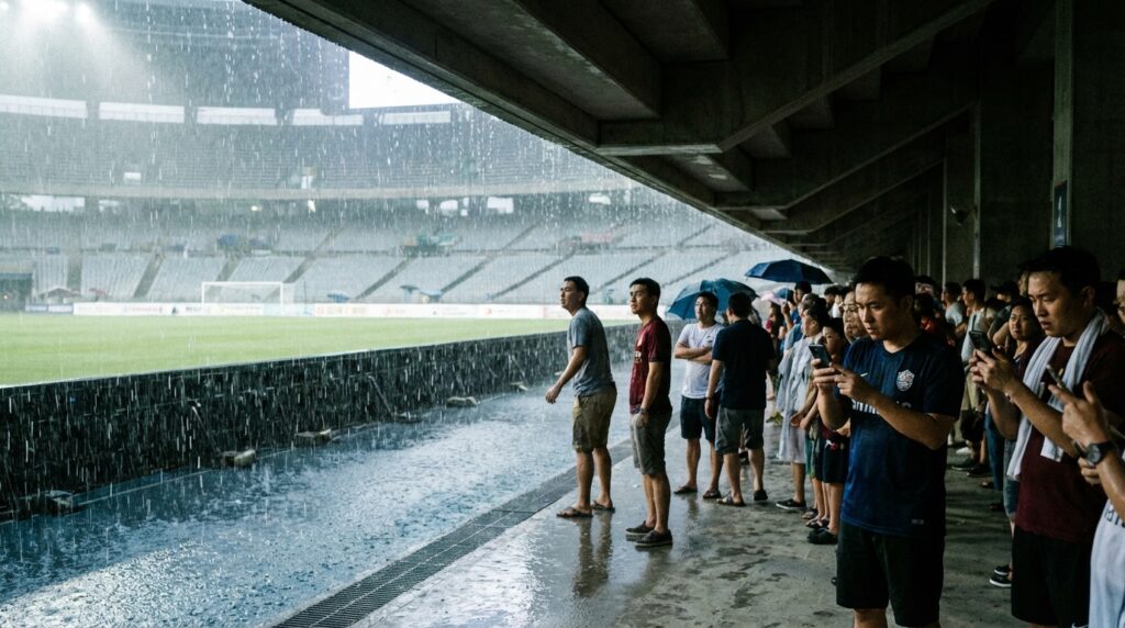 Picture the scene. The referee blows the final whistle just as the first massive crack of thunder echoes through the stadium. Sixty-five thousand frantic fans all immediately pull out their smartphones to hail an Uber or find walking directions to their cars.