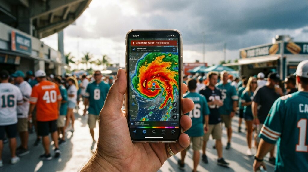 These pop-up thunderstorms do not typically form massive, organized lines that you can easily track on a national news broadcast. Instead, they rapidly bubble up directly over specific neighborhoods. It might be pouring torrential rain on the north side of Hard Rock Stadium while the south parking lots remain completely bone dry. This hyper-local volatility makes generic, pre-installed smartphone weather applications completely useless. When your default phone app says there is a thirty percent chance of rain, it does not tell you if that rain is going to drop directly on your tailgate party or miss you by five miles.