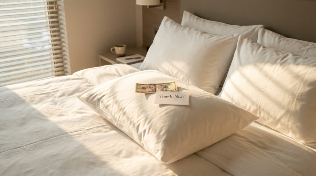 What about the housekeeping staff who magically make your bed and replace your towels while you are out exploring the city? You should leave between two and five dollars per night. The absolute best practice is to leave this cash daily on your pillow or accompanied by a small note that clearly says “Thank You.” Do not wait until the final day of your trip to leave a massive pile of cash, because the housekeeping staff rotates shifts constantly. The person who cleans your room on Tuesday might not be the same person who cleans it on Friday, so tipping daily ensures the right person gets rewarded for their hard work.