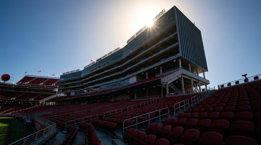 As the sun begins its rapid descent toward the Pacific Ocean, it dips completely behind the massive luxury suite tower. This bathes the entire upper western deck in a beautiful, cool shadow. You get the sweeping, panoramic views of the entire stadium and the surrounding Santa Clara valley without baking in the heat. It is a fantastic strategy for fans looking to save a little money on tickets without sacrificing their physical comfort.